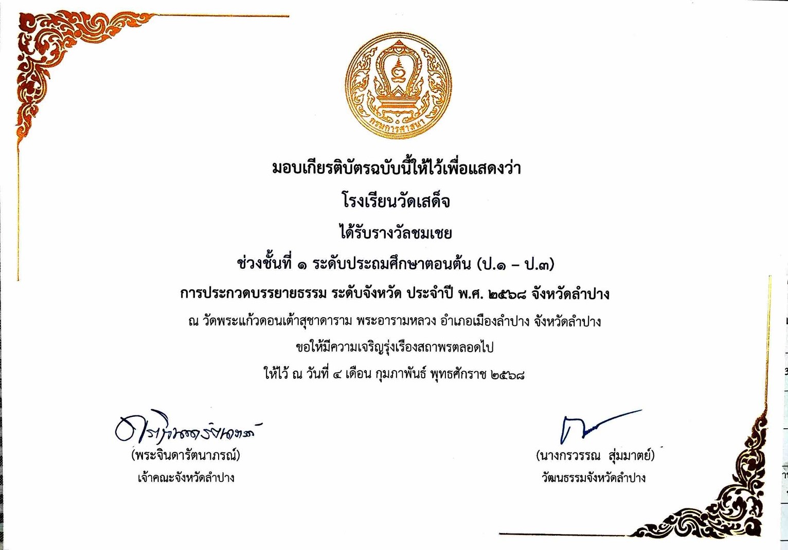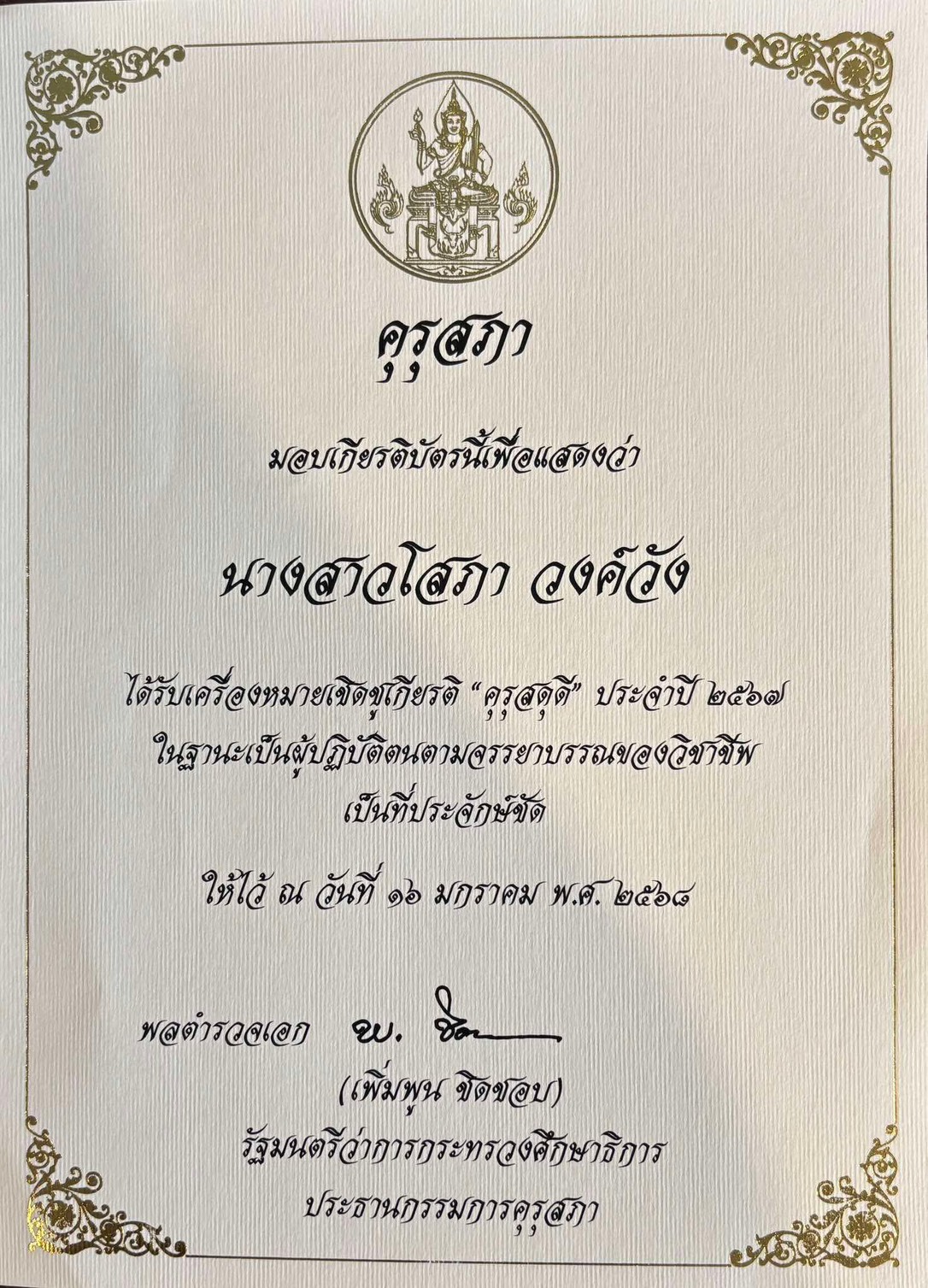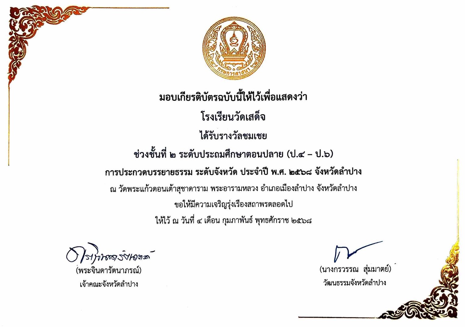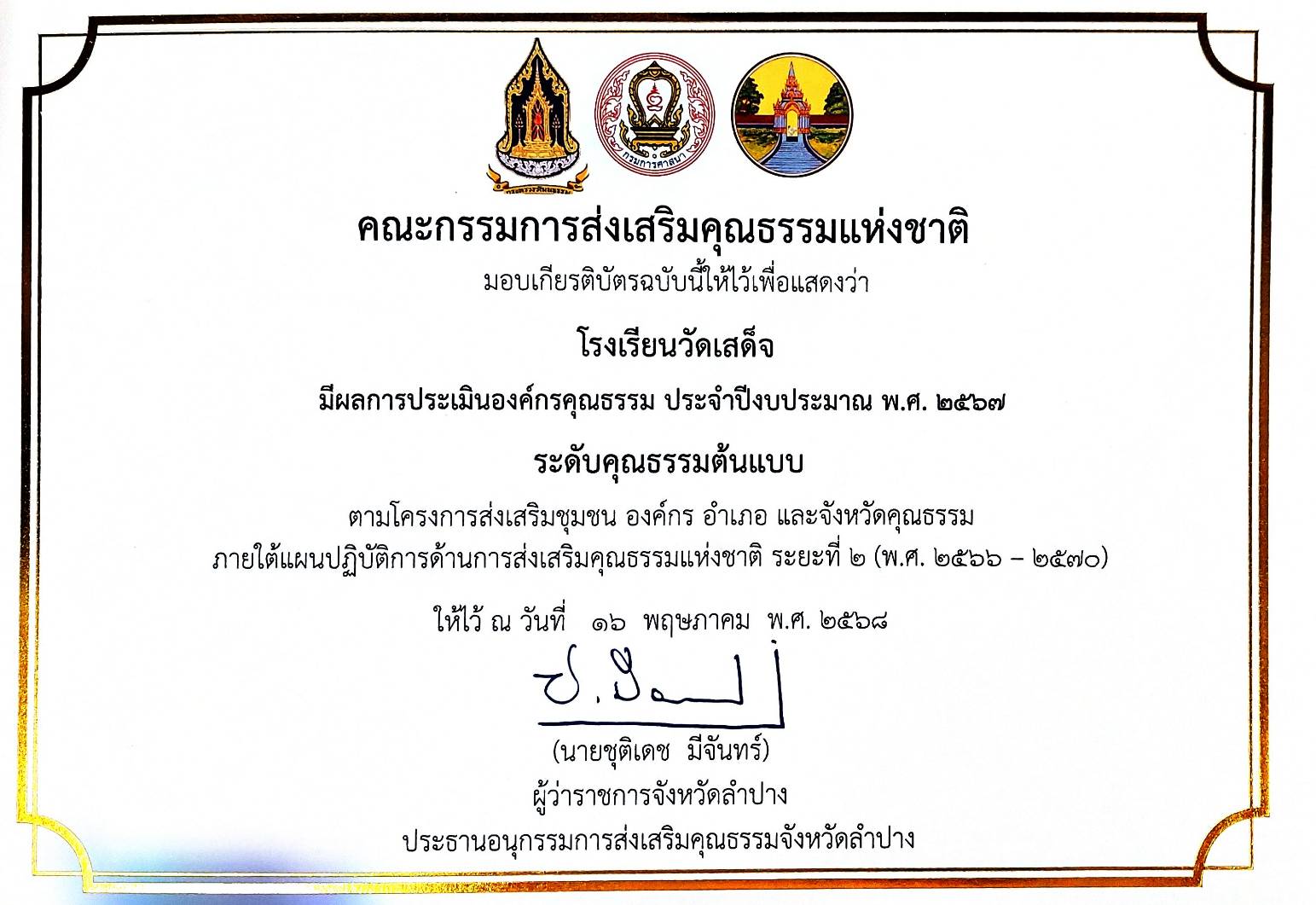 เกียรติบัตรโรงเรียนต้นแบบคุณธรรม 2568