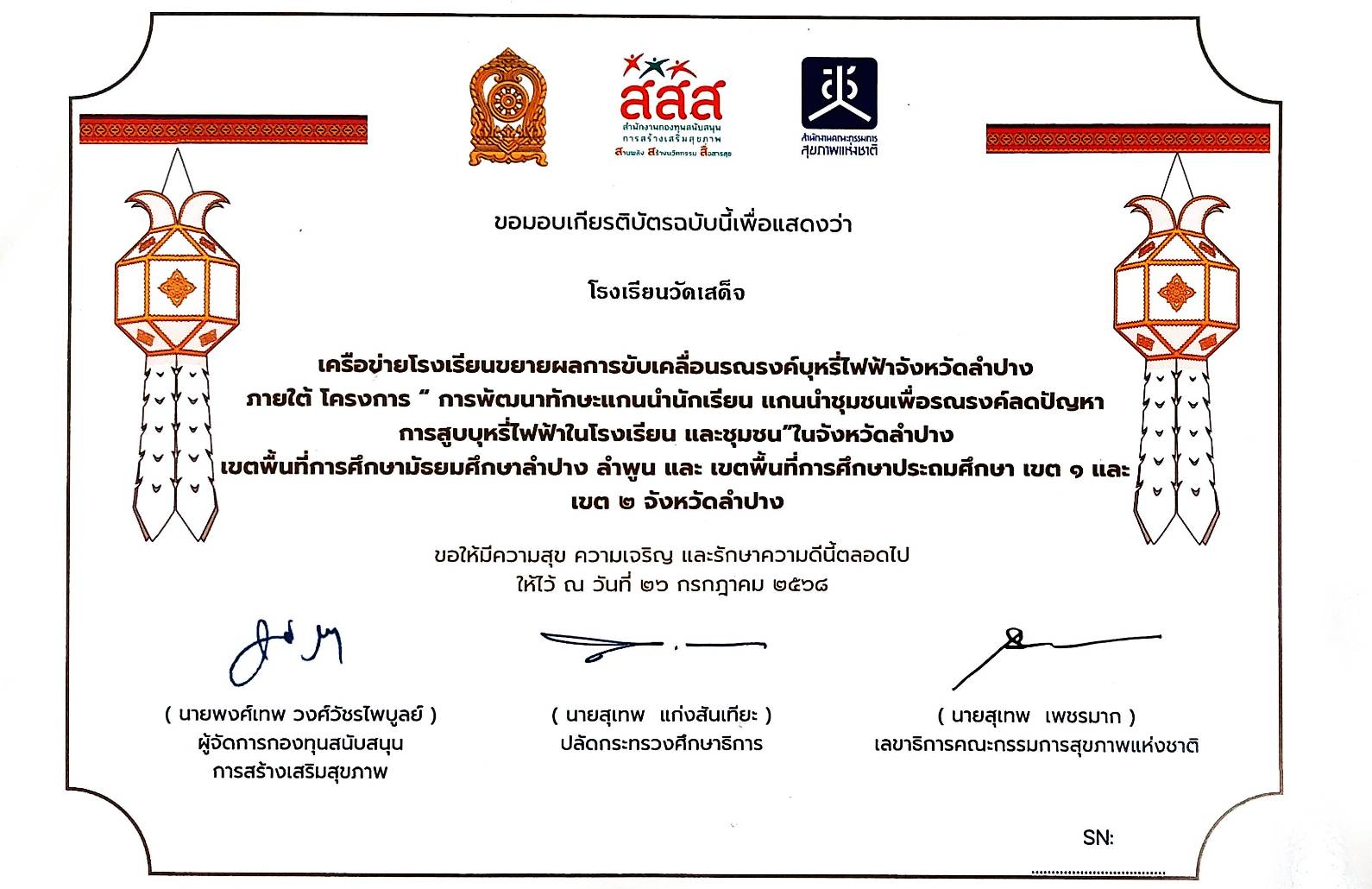 เกียรติบัตรอบรมขยายผลบุหรี่ไฟฟ้า 2568