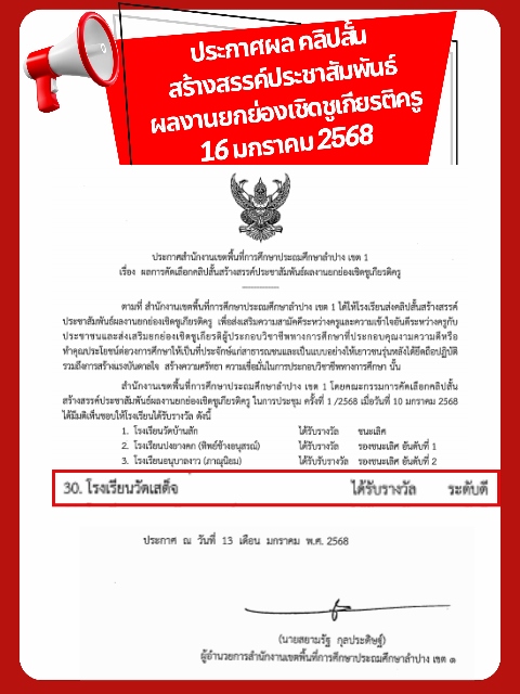 คลิปสั้นสร้างสรรค์ประชาสัมพันธ์ผลงานยกย่องเชิดชูเกียรติครู 2568